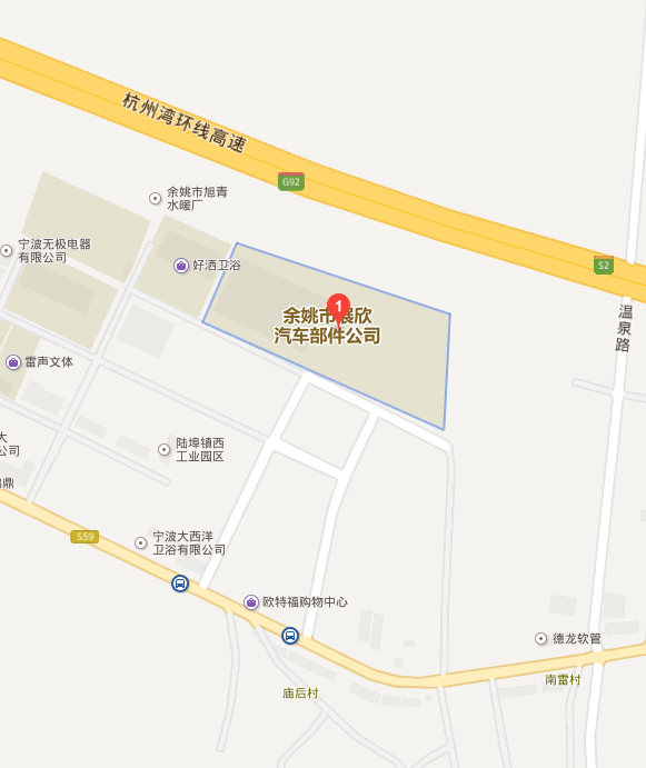 余姚市展欣汽車部件有限公司,地處寧(波)紹(興)平原中心,位于風景秀麗的浙江省余姚市陸埠鎮西工業園區。緊靠杭甬高速和蕭甬鐵路,近臨杭州灣跨海大橋,距河姆渡遺址10公里...